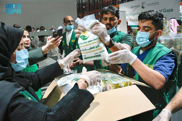 وضمن فعاليات تلك الحملة، نظّم مركز الملك سلمان للإغاثة اليوم في مستودعاته بمدينة الرياض، فعالية تجهيز السلال الغذائية التي شارك فيها عدد من منسوبي المركز والمتطوعين من أفراد المجتمع ورجال الإعلام والمؤثرين في وسائل التواصل الاجتماعي، حيث قاموا بإعداد وتجهيز السلال الغذائية التي تشتمل على المكونات الغذائية الرئيسية التي تلبي احتياجات الأسر الفلسطينية، وتم تضمينها “رسائل الأمل” التي خطّتها أنامل أطفال المملكة يعبرون فيها عن تضامنهم مع أطفال غزة؛ تمهيدًا لإرسالها إلى الأشقاء الفلسطينيين في القطاع.