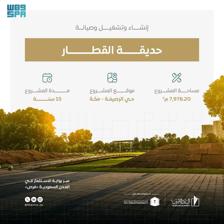 أعلنت شركة البلد الأمين، -الذراع الاستثماري لأمانة العاصمة المقدسة- عن طرح مشروع إنشاء وتشغيل واستثمار وصيانة حديقة القطار بحي الرصيفة بمدينة مكة المكرمة.