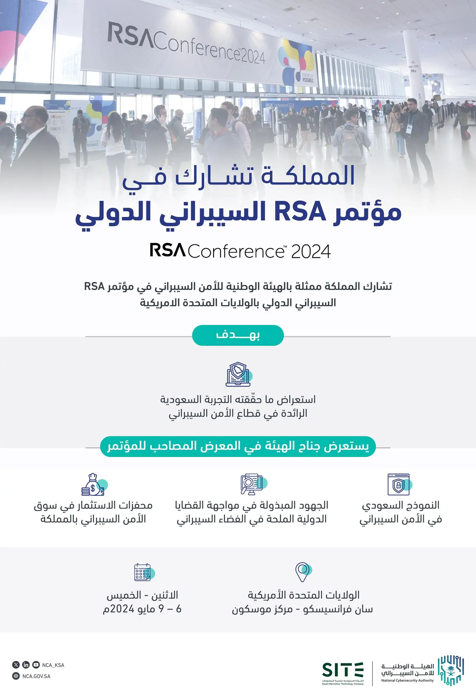ويعد مؤتمرRSA السيبراني الدولي، الذي انطلقت أعماله في العام 1991م، منصة دولية تجمع قادة وخبراء الأمن السيبراني والمختصين والمهتمين في المجال من حول العالم، وتمثل فرصة لاستكشاف المعرفة ومناقشة أهم الموضوعات والمستجدات في المجالات ذات الصلة بالأمن السيبراني وتحدياته الحالية والمستقبلية، وتعزيز الشراكات بين المنظمات الدولية والشركات العالمية المختصة في المجال.