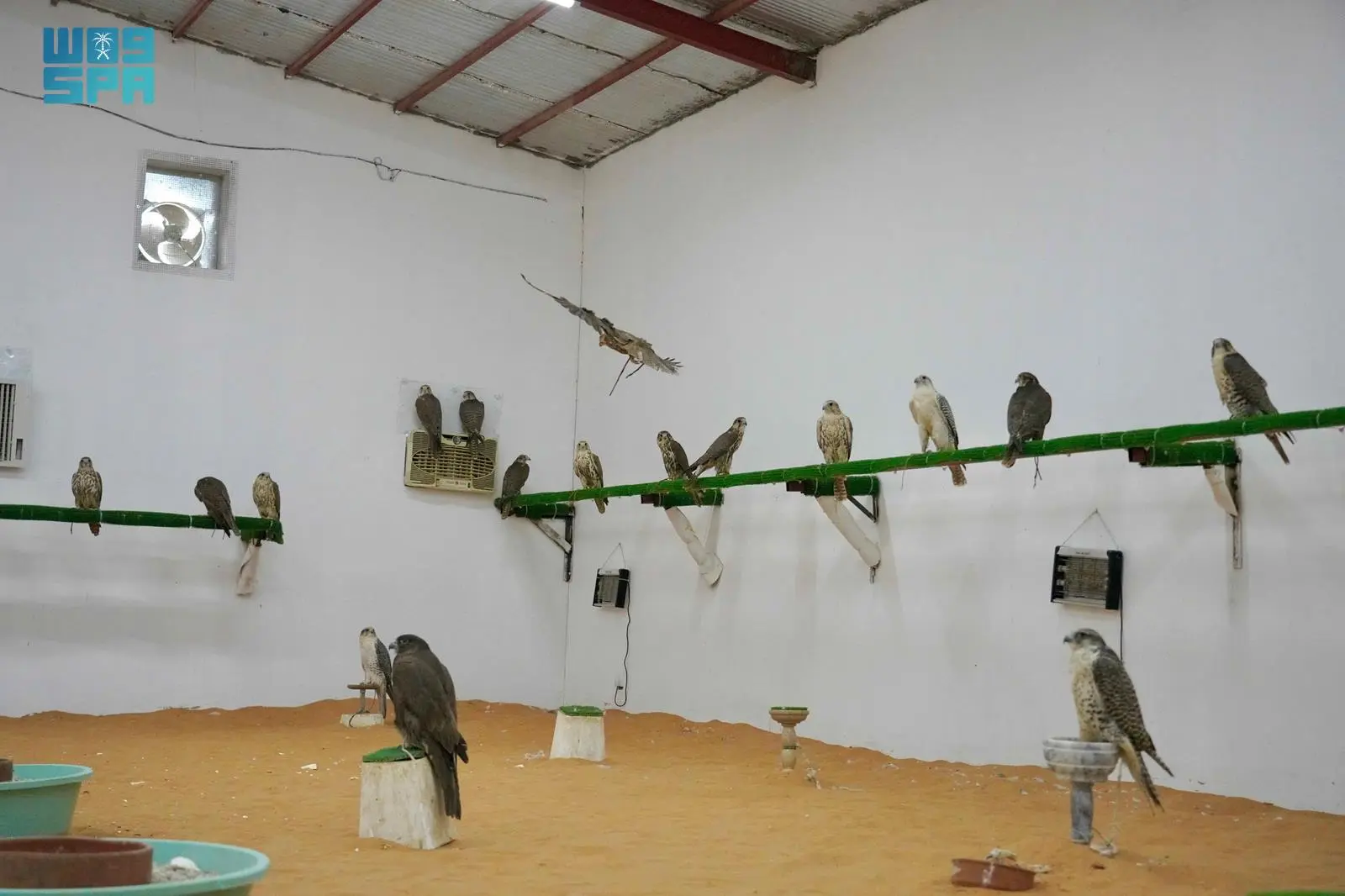 وأشار إلى أن لديه العديد من الطيور ومنها الحر والجير، مبينا أن مساحة المربط ومواصفاته تختلف من مربط لآخر حسب الإمكانيات، ويفضل الارتفاع أكثر، ويكون هناك مساحة (تشميس) طبيعية يطير فيها الصقر للترفيه؛ بينما بالنسبة للأرضية يجب أن تكون رملًا إلى جانب وجود لمبات زرقاء، وتهوية ممتازة يتم التحكم فيها.