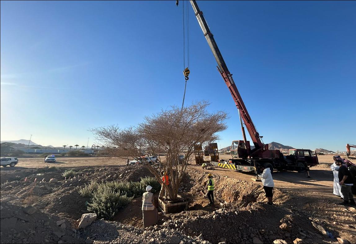 “الغطاء النباتي” ينقل 8 أشجار معمرة إلى متنزه البيضاء بالمدينة المنورة