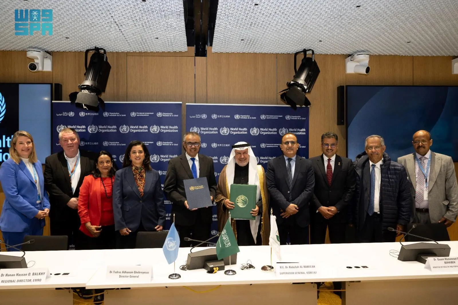 وقع مركز الملك سلمان للإغاثة والأعمال الإنسانية اليوم خمسة برامج تنفيذية مشتركة مع منظمة الصحة العالمية لصالح اليمن والسودان وسوريا بقيمة 19 مليونا و 496 ألف دولار أمريكي ؛ وذلك على هامش أعمال الجمعية العامة لمنظمة الصحة العالمية بدورتها ال 77 في مدينة جنيف، حيث وقع الاتفاقيات الخمس معالي المستشار بالديوان الملكي المشرف العام على المركز الدكتور عبد الله بن عبد العزيز الربيعة، والمدير العام لمنظمة الصحة العالمية الدكتور تيدروس أدهانوم غيبريسوس، بحضور المندوب الدائم للمملكة لدى الأمم المتحدة في جنيف السفير عبدالمحسن بن خثيلة.