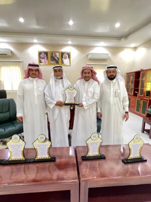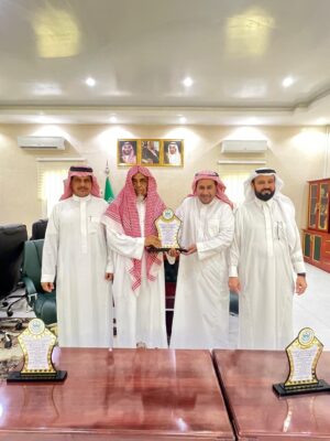 كرم سعادة محافظ العرضيات الأستاذ علي بن يوسف المهداوي أعضاء لجنة إصلاح ذات البين بعد استقباله لهم في مكتبه بمقر المحافظة اليوم وبحضور وكيل المحافظة الأستاذ عبيد بن سيف العتيبي.