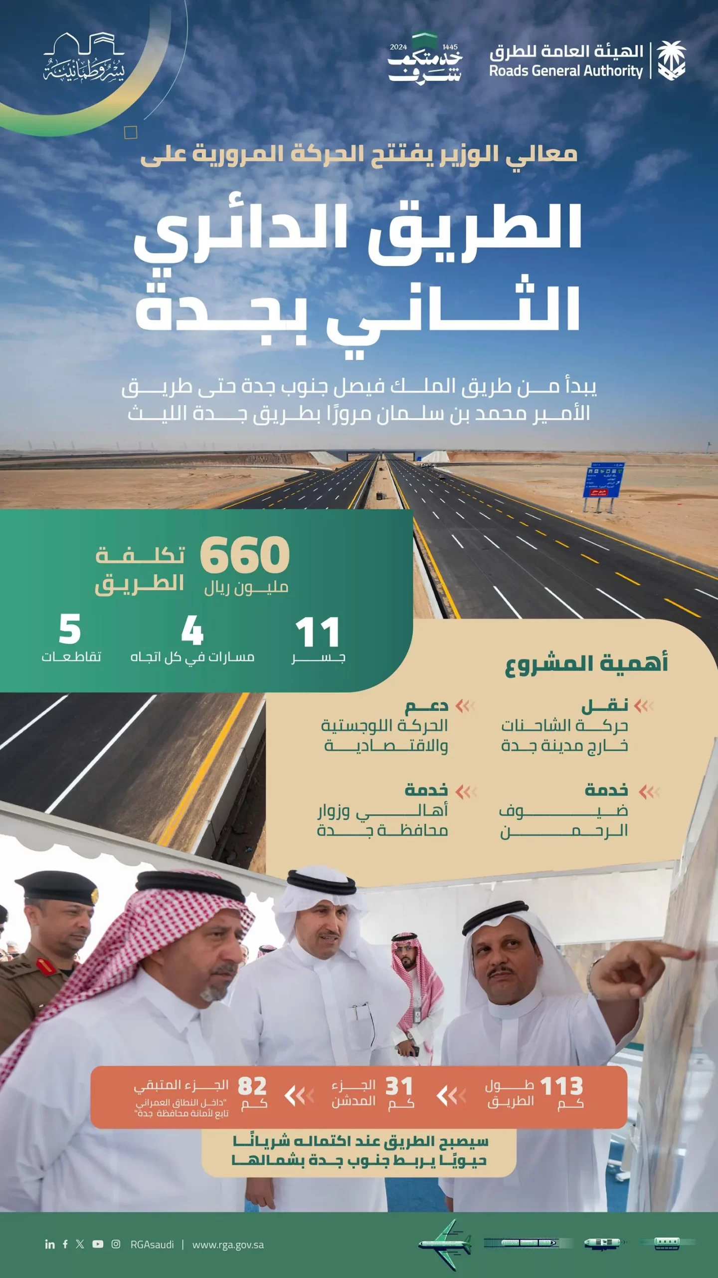وزير النقل يفتتح الحركة المرورية على الطريق الدائري الثاني بجدة
