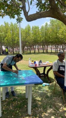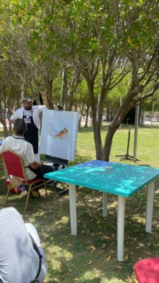 وشهد الملتقى في يومه الأول إقامة العديد من ورش العمل، شارك فيها العديد من الفنانين التشكيليين ، والجهات الحكومية ذات العلاقة .