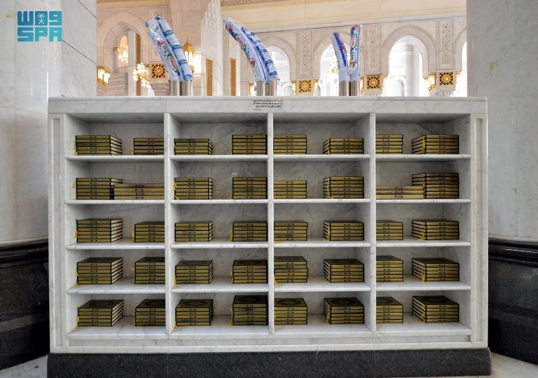 هيئة العناية بشؤون الحرمين توفر أعداداً كبيرة من المصاحف في جميع أنحاء المسجد الحرام استعداداً لموسم الحج