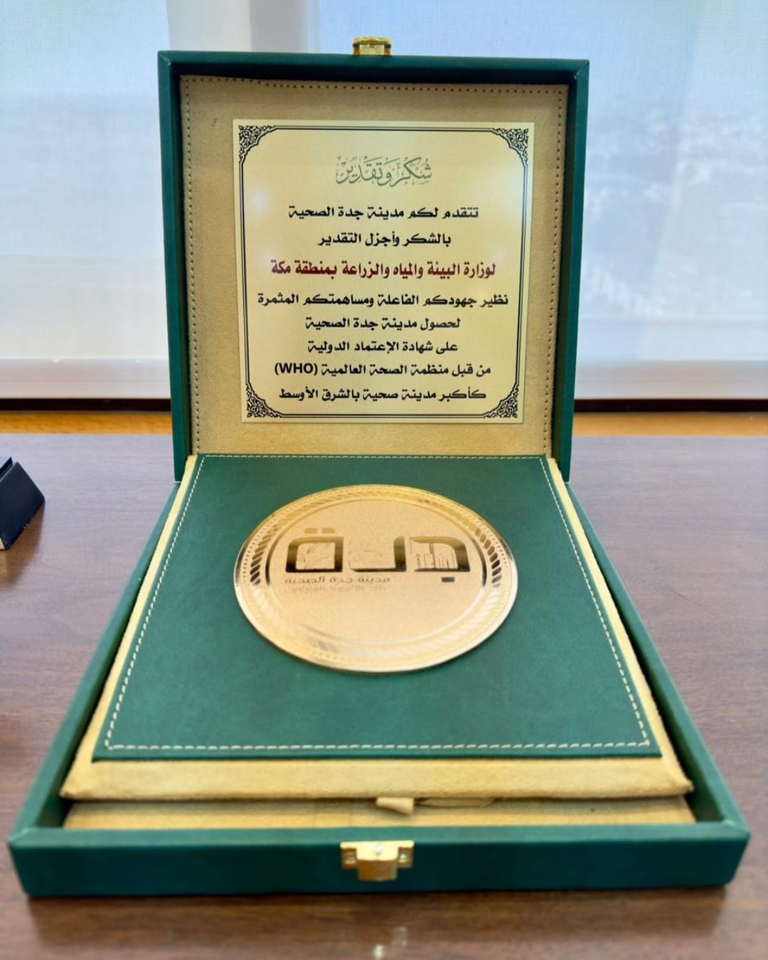 كرَّم الأمير سعود بن عبدالله بن جلوي، محافظ جدة، ادارة البيئة بفرع وزارة البيئة والمياه والزراعة بمنطقة مكة المكرمة، نظير مشاركتها في حصول محافظة جدة على شهادة الاعتماد الدولية من منظمة الصحة العالمية (WHO) كأكبر مدينة صحية بالشرق الأوسط .