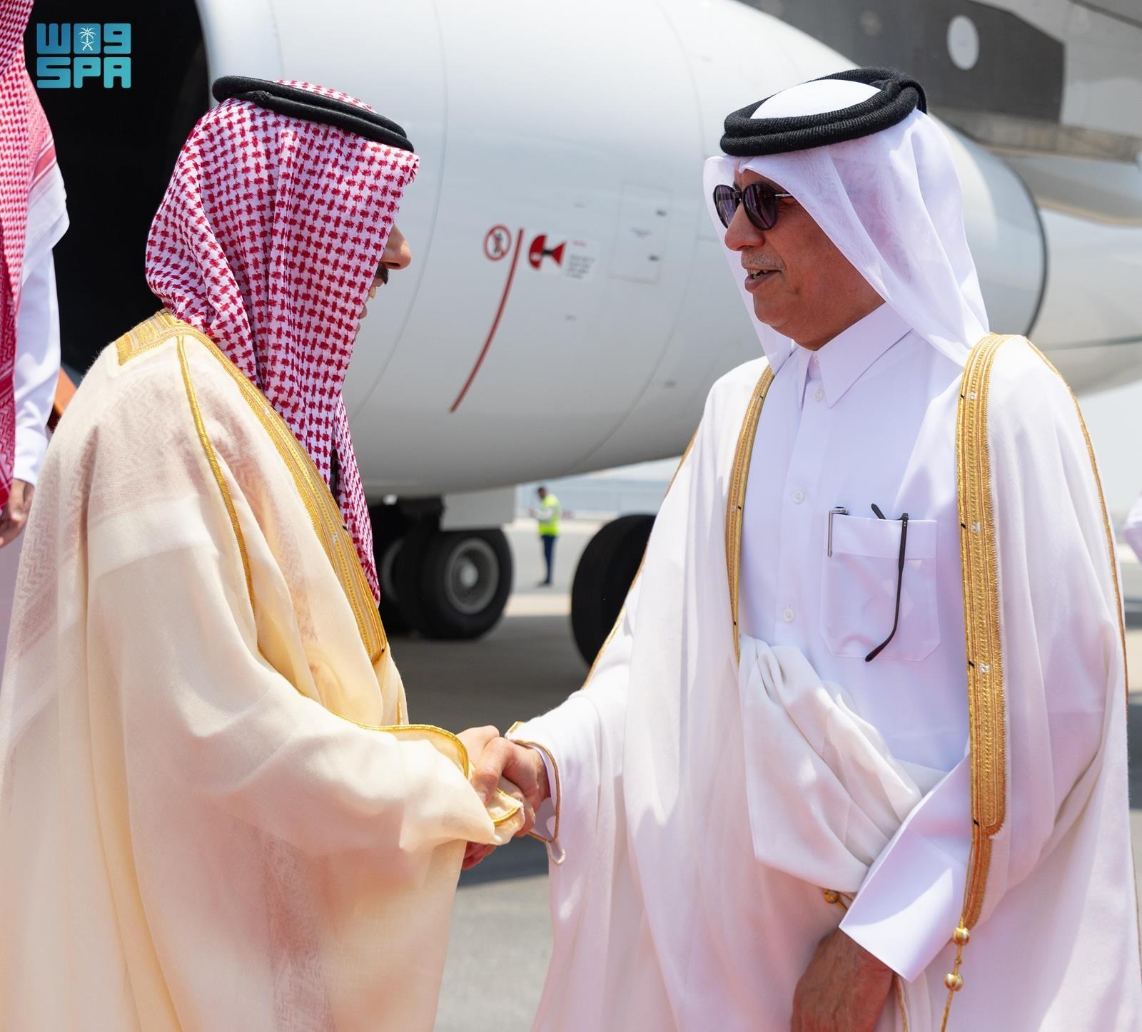 وكان في استقبال سموه لدى وصوله مطار الدوحة الدولي، معالي وزير الدولة للشؤون الخارجية بدولة قطر سلطان بن سعد المريخي، وصاحب السمو الأمير منصور بن خالد بن فرحان سفير خادم الحرمين الشريفين لدى دولة قطر، ومعالي الأمين العام لمجلس التعاون لدول الخليج العربية السيد جاسم محمد البديوي.