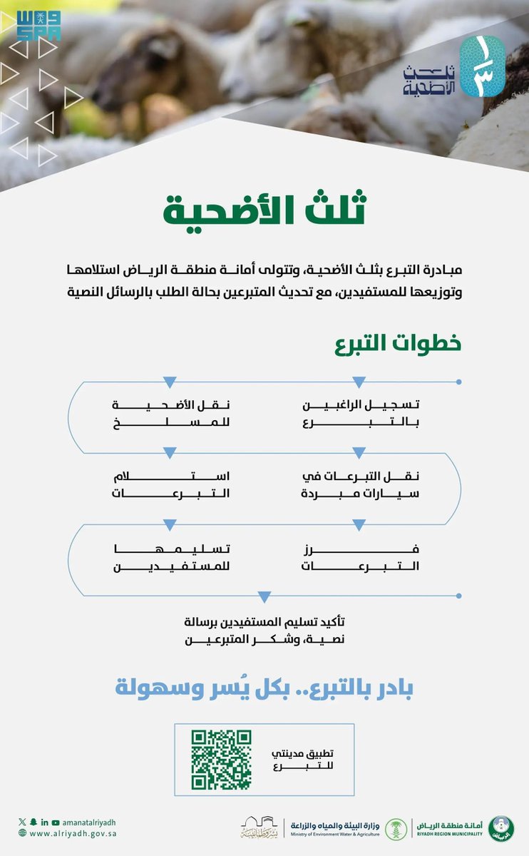 أمانة الرياض تطلق مبادرة "ثلث الأضحية" المجتمعية لتسهيل التبرع ووصول الأضاحي لمستحقيها عبر تطبيق "مدينتي"