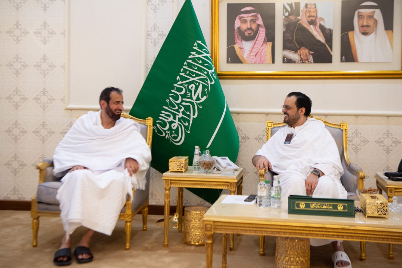 استقبل نائب أمير منطقة مكة المكرمة نائب رئيس لجنة الحج المركزية صاحب السمو الملكي الأمير سعود بن مشعل بن عبدالعزيز في مقر الإمارة بمشعر عرفات وزير الحج والعمرة الدكتور توفيق الربيعة.