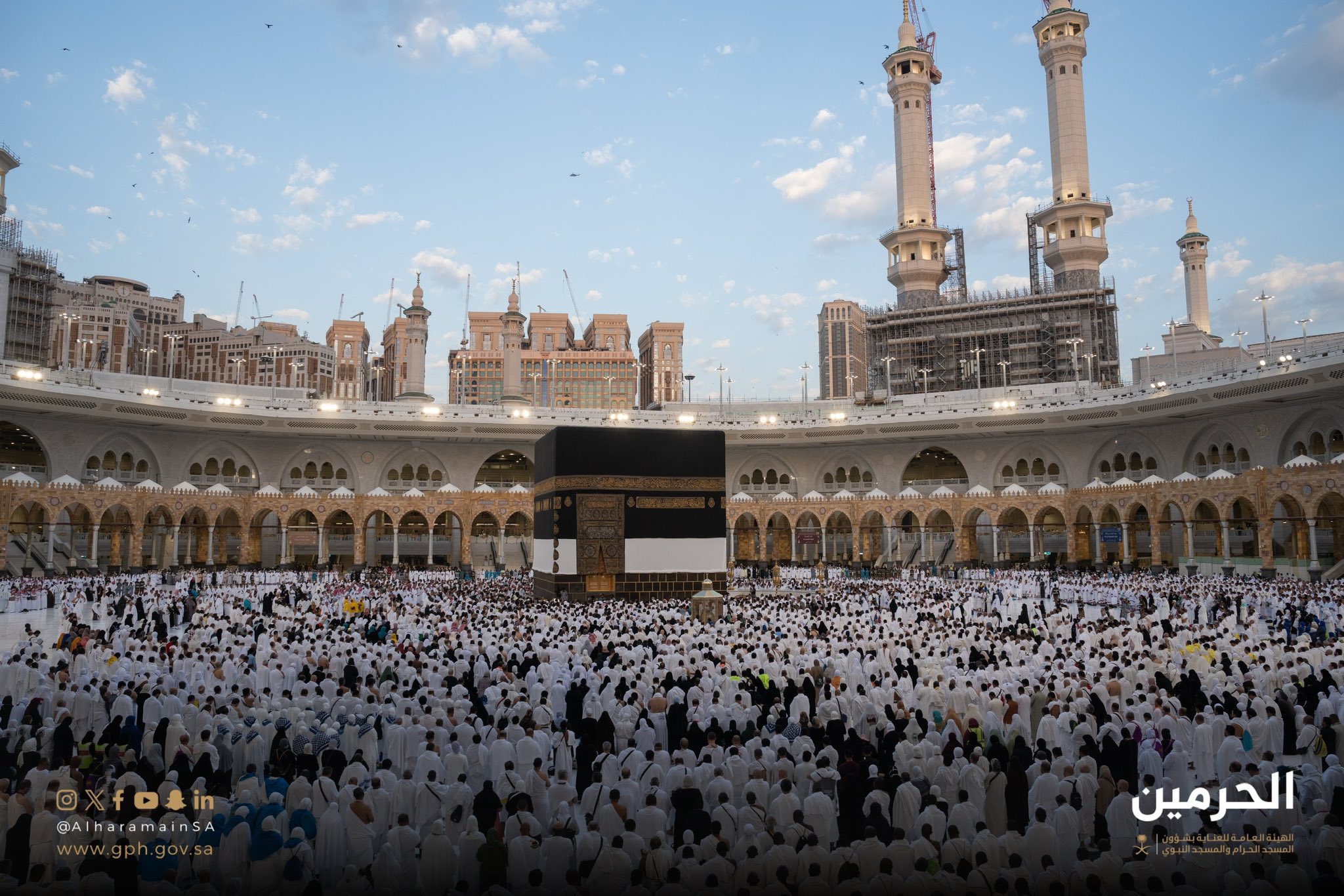 وقال في خطبتة وفود الحجيج المُبَاركين: عيدكم مبارك وتقبل الله منا ومنكم صالح الأعمال، ها قد امْتَنَّ الله عليكم بِبُلُوغ هذا اليوم الأغرِّ الأطهر، المُحَجَّل الأزهر، يوم الحَجِّ الأكبر، يومٌ تَهُبُّ نَسَائم عِطره وتُشرِق السُّبُل والدُّروب، وتطمَئِنُّ الجوارِح وتبْتهِجُ القُلوب، وتزْخَرُ في النُّفوس أصْدَق العِبَارات، وتُجَابُ الضَّرَاعات والدَّعوات، وتُقال الهَفَوات والعَثَرَات، وتُرْفَعُ الدَّرجات وتَنُال الحَسَنات، فَطوبى لكم الحَجُّ المَبرور، طوبى لكم الذَّنْب المغفور، طُوبى لكم السعي المشكور، طوبى لكم مُبَاهاة الملائكة من العزيز الغَفُور، فافرحوا بعيدكم وابتهجوا، الله أكبر، الله أكبر، الله أكبر كبيرَا. الله أكبر الله أكبر ولله الحمد.