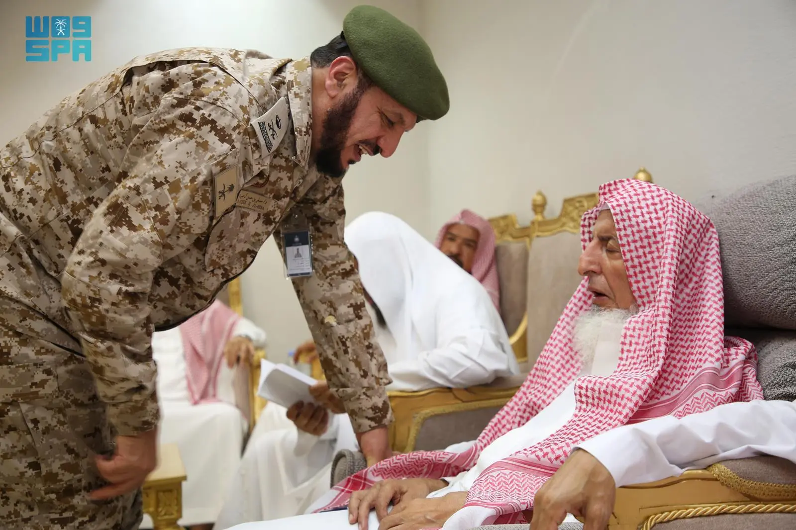 استقبل سماحة المفتي العام للمملكة رئيس هيئة كبار العلماء والرئيس العام للبحوث العلمية والإفتاء الشيخ عبدالعزيز بن عبدالله آل الشيخ، بمقر إقامة سماحته بمشعر منى في مكة المكرمة، مدير عام الإدارة العامة للشؤون الدينية للقوات المسلحة اللواء الدكتور مسفر بن حسن آل عيسى، الذي قدم للسلام على سماحته وتهنئته بالعيد.