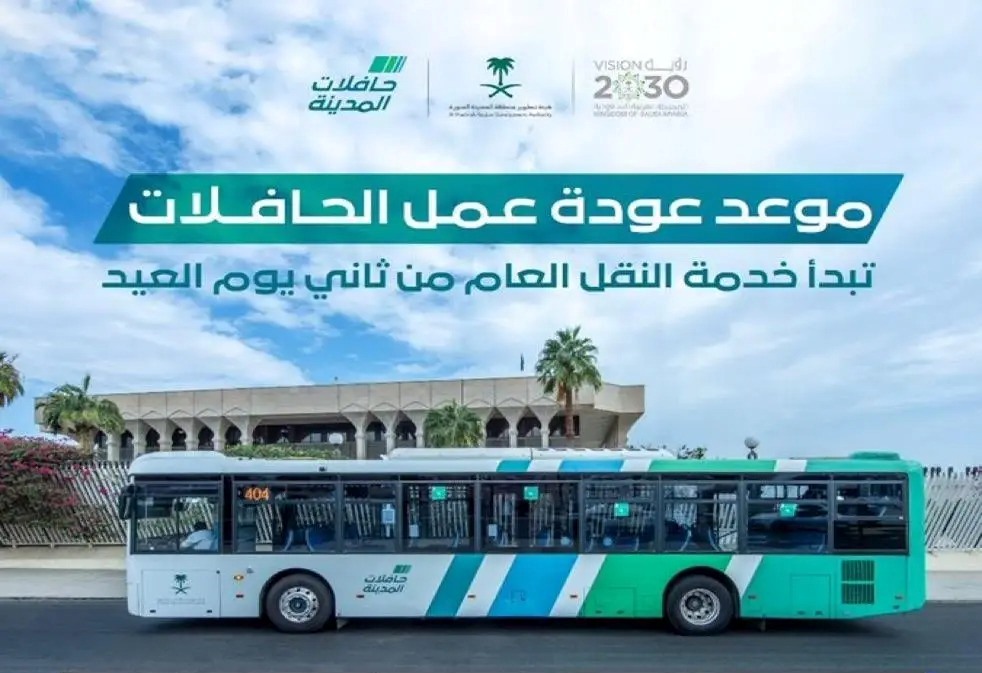 يعاود مشروع حافلات المدينة المنورة للنقل العام، الذي تشرف عليه هيئة تطوير المدينة المنورة اليوم ثاني أيام العيد، تقديم خدمة نقل المستفيدين عبر ستة مسارات، تشمل ١٠٢ محطة وقوف في مختلف الطرق والمحاور الرئيسية بالمدينة المنورة.