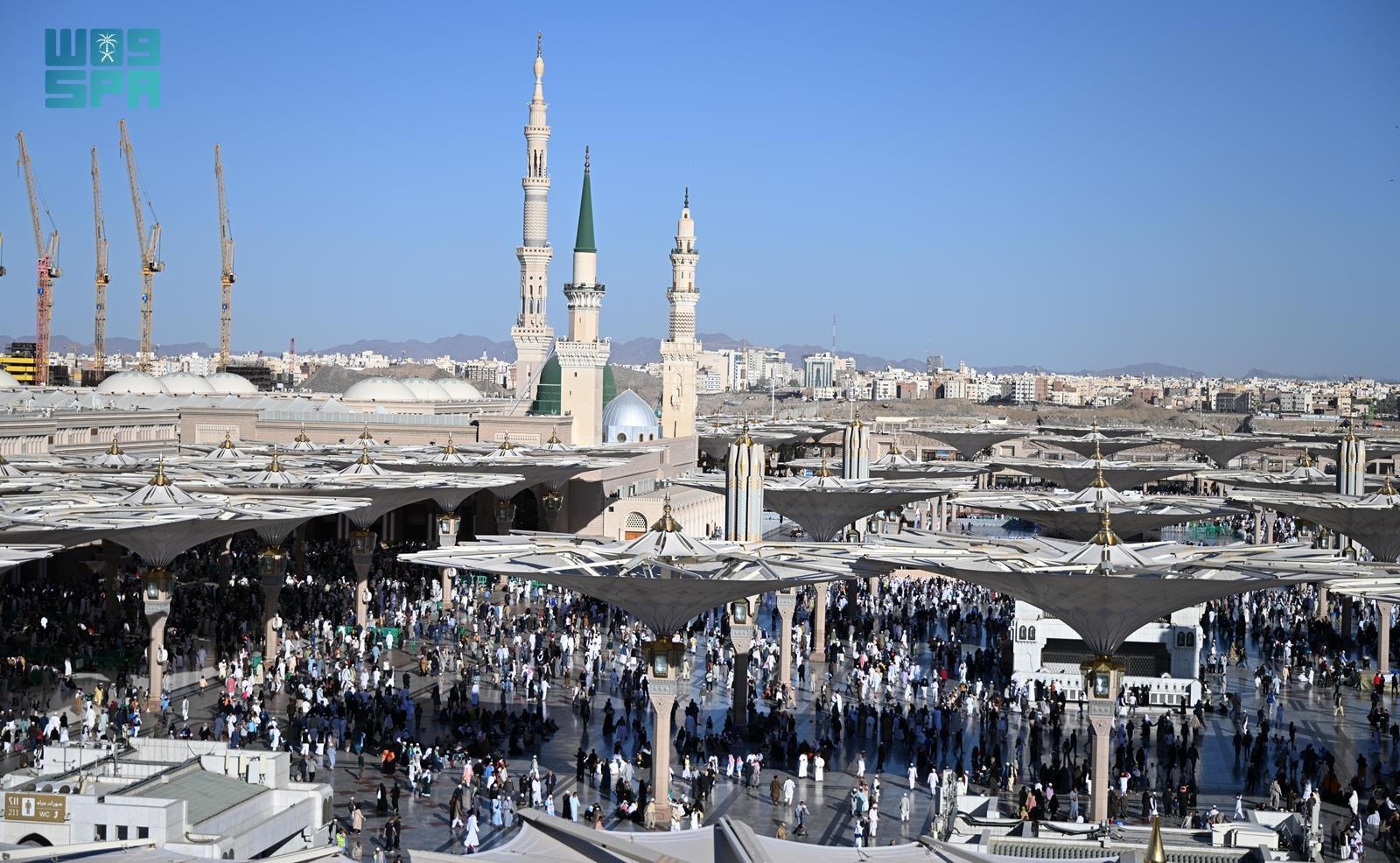 وامتلأ المسجد النبوي الشريف وأروقته وأدواره وساحاته منذ الصباح الباكر بالمصلين من ضيوف الرحمن، الذين سألوا المولى العلي القدير أن يتقبل حجهم وفرائضهم شاكرين لله أن منّ عليهم بأداء الفريضة في أجواء مفعمة بالأمن والأمان واليسر والطمأنينة.