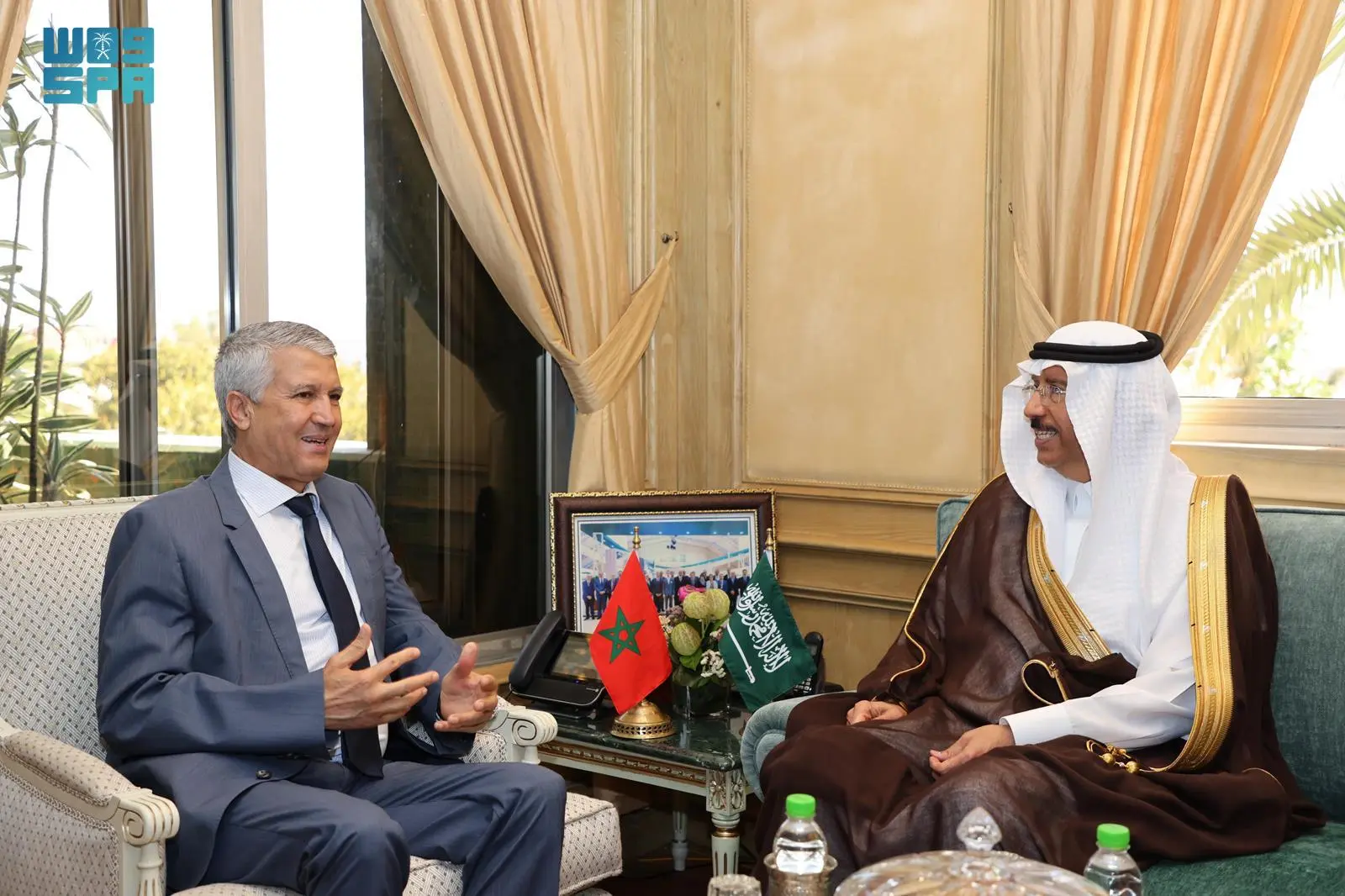 التقى سفير خــادم الحرمين الشريفـــين لدى المملكة المغـربية الدكتور سامي بن عبد الله الصالح، اليوم، معالي وزير الفلاحة والصيد البحري والتنمية القروية والمياه والغابات بالمملكة المغربية محمد صديقي، وذلك في مقر الوزارة.