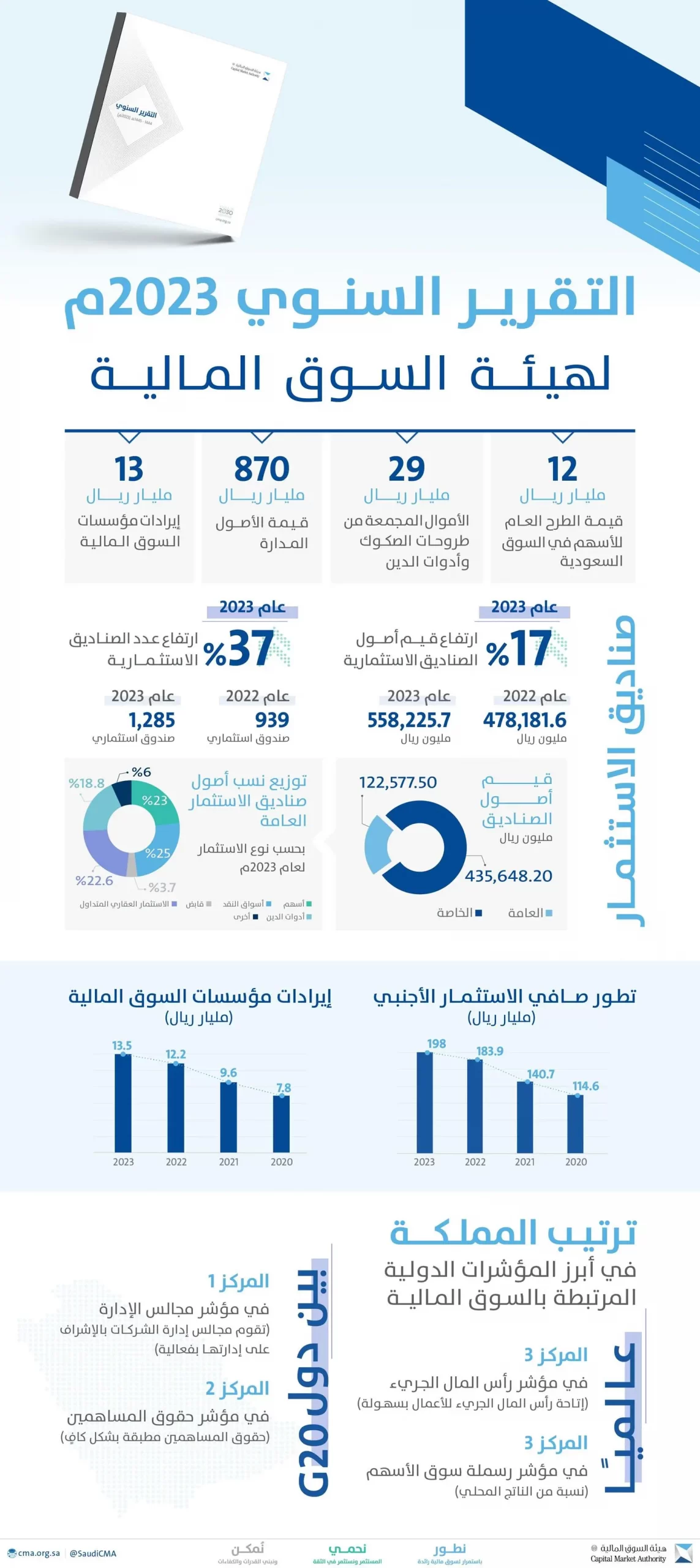 ويمكن للراغبين للاطلاع على التقرير السنوي للهيئة لعام 2023م زيارة الرابط التالي : https://cma.org.sa/Market/Reports/Documents/cma_2023_report.pdf