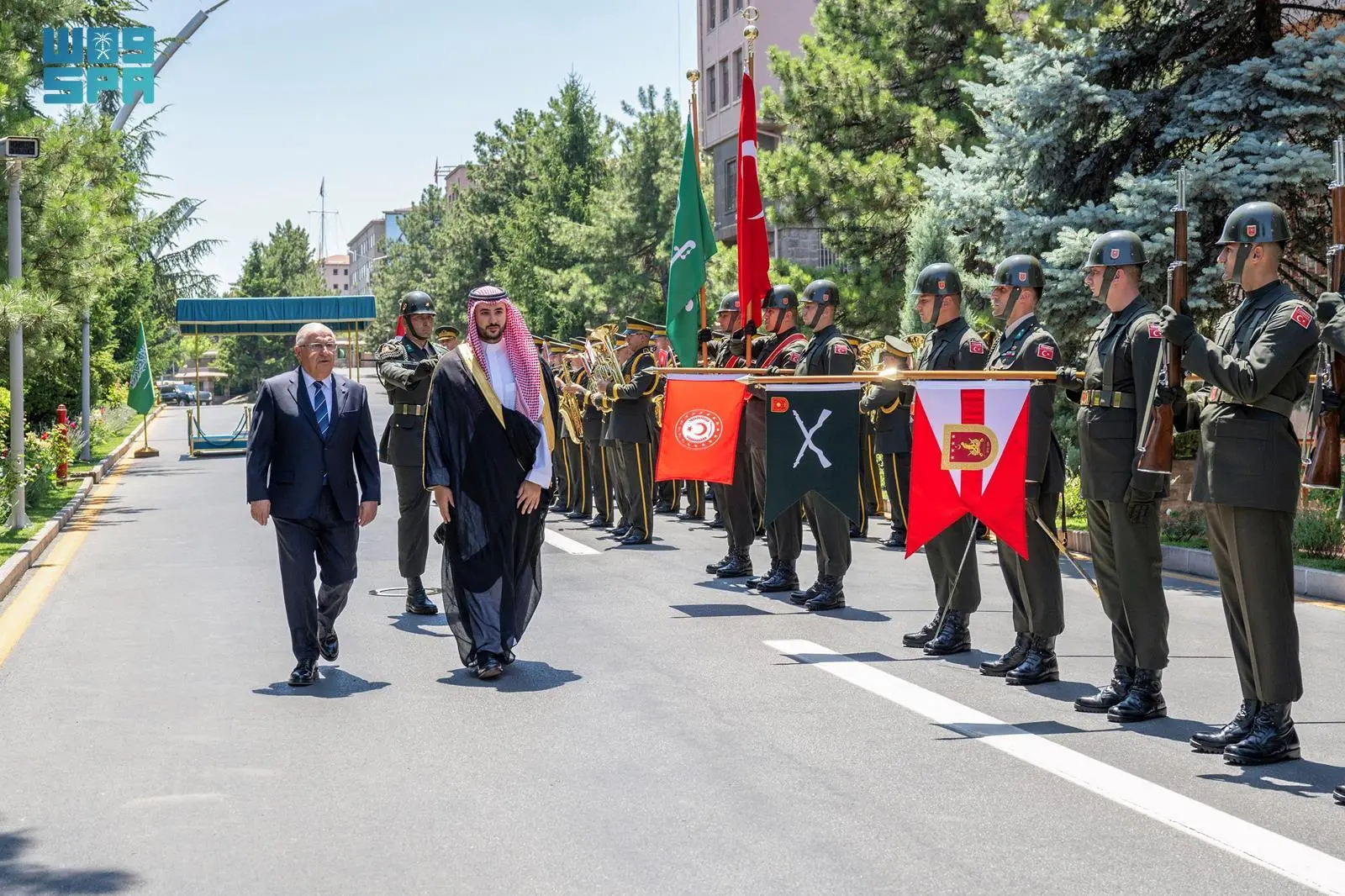 وفور وصول سمو وزير الدفاع أُجريت لسموه مراسم استقبال رسمية، حيث عزف السلام الوطني للبلدين، واستُعرض حرس الشرف، ثم صافح سموه أعضاء الوفد التركي، فيما صافح معالي وزير الدفاع الوطني التركي أعضاء الوفد السعودي، ثم التقطت الصورة التذكارية، ووقع سموه في دفتر الشرف.