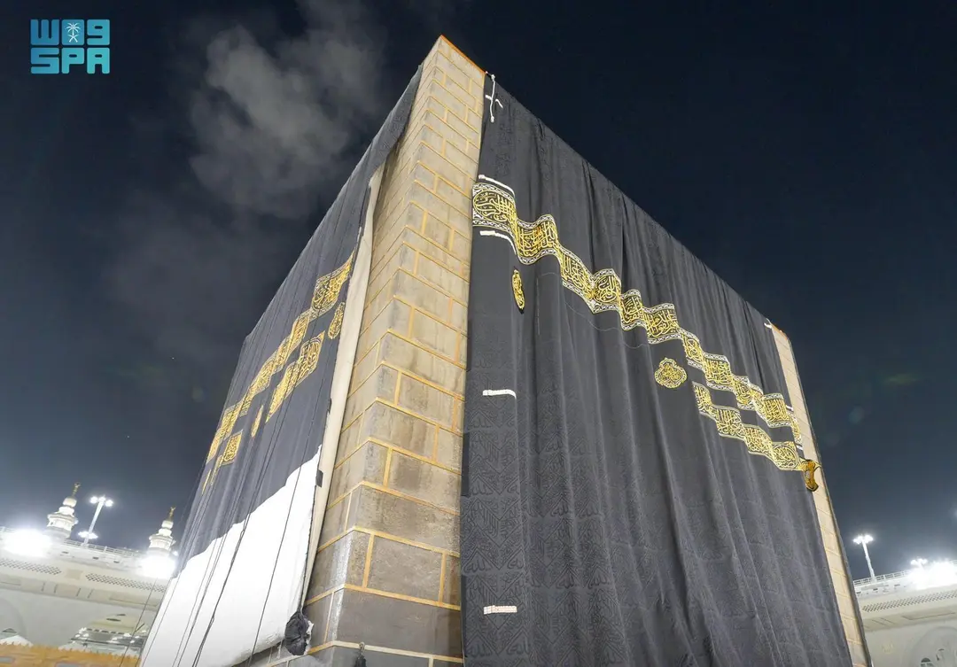 قامت الهيئة العامة لللعناية بشؤون المسجد الحرام والمسجد النبوي اليوم، بتغيير كسوة الكعبة المشرفة كما جرت العادة السنوية، وذلك من خلال فريق عمل من مجمع الملك عبدالعزيز لكسوة الكعبة المشرفة يبلغ عدده 159 صانعاً يقومون بتنفيذ عملية التغيير، وموزعون على جوانب وسطح الكعبة المشرفة حسب الاختصاص، حيث بدأ الفريق بتفكيك الكسوة القديمة وتركيب الجديدة، ثم تثبيتها في أركان الكعبة وسطحها.