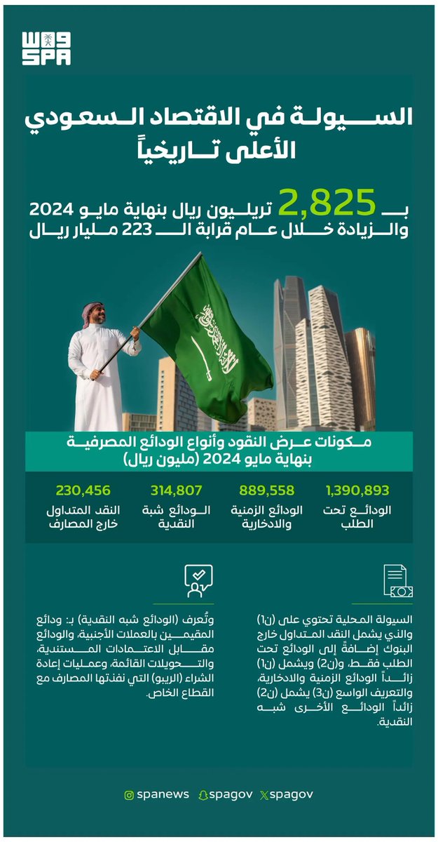 السيولة في الاقتصاد السعودي الأعلى تاريخياً بــ 2,825 ترليون ريال