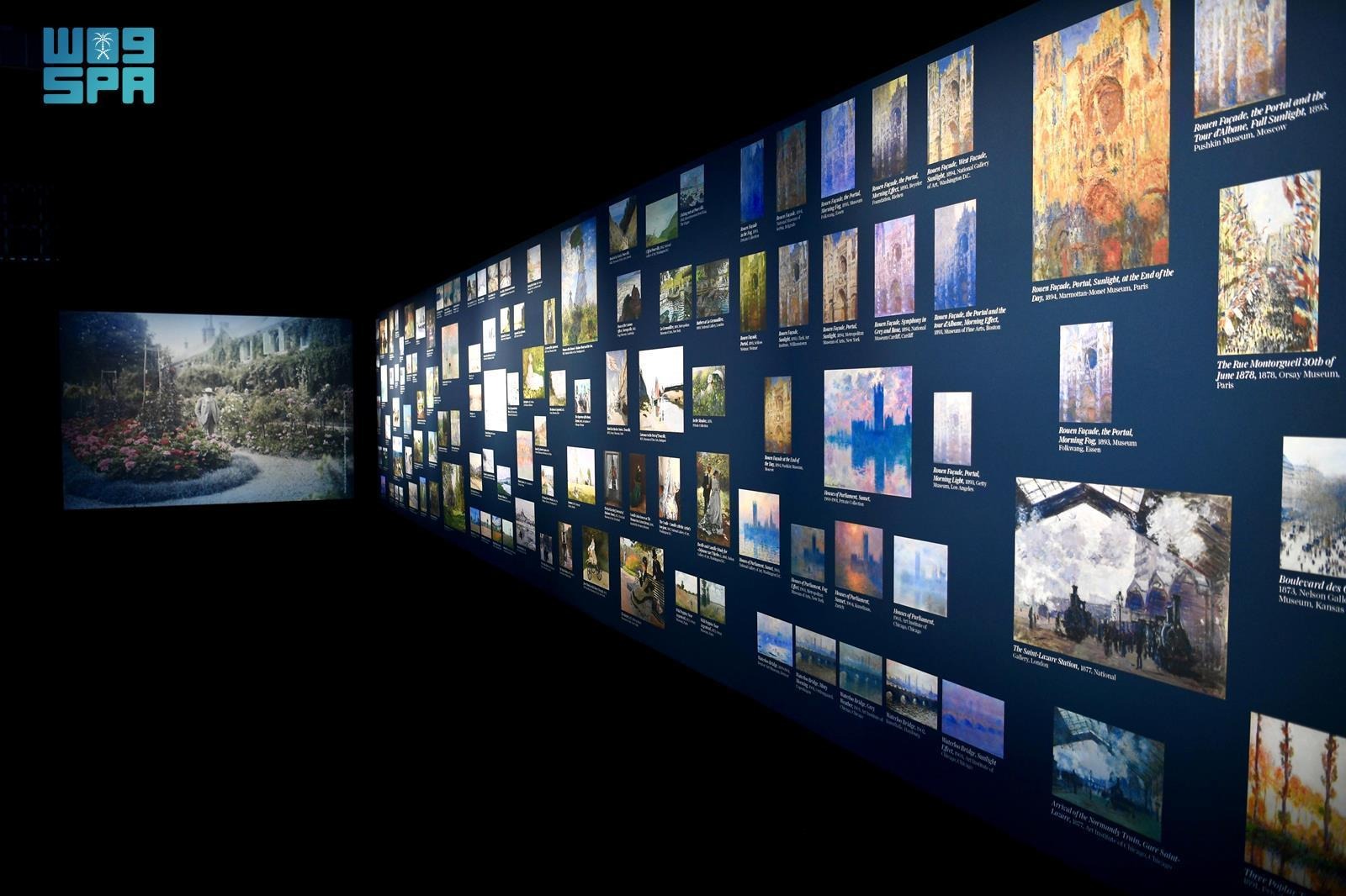 وتبدأ سلسلة المعرض بلوحة “انطباع شروق الشمس” (1872) الشهيرة، ويختتم ” بزنابق الماء” (1914- 1926)، وتمثل أقسام المعرض رحلة عبر الزمن لاستكشاف عبقرية الفنان وفهمه العميق للضوء واللون؛ كونه يُقدم تجربة أصيلة لمحبي الفن الأصيل، حيث صمم المعرض (غرفة اكتشاف) بمثابة رحلة تعليمية تبدأ باللوحات المعروضة قبل الدخول إلى فضائه، وإتاحة الرؤية بزاوية 360 درجة للوحات الفنية، إلى جانب تجربة سمعية بصرية مبتكرة باستخدام تقنية Image Totale .