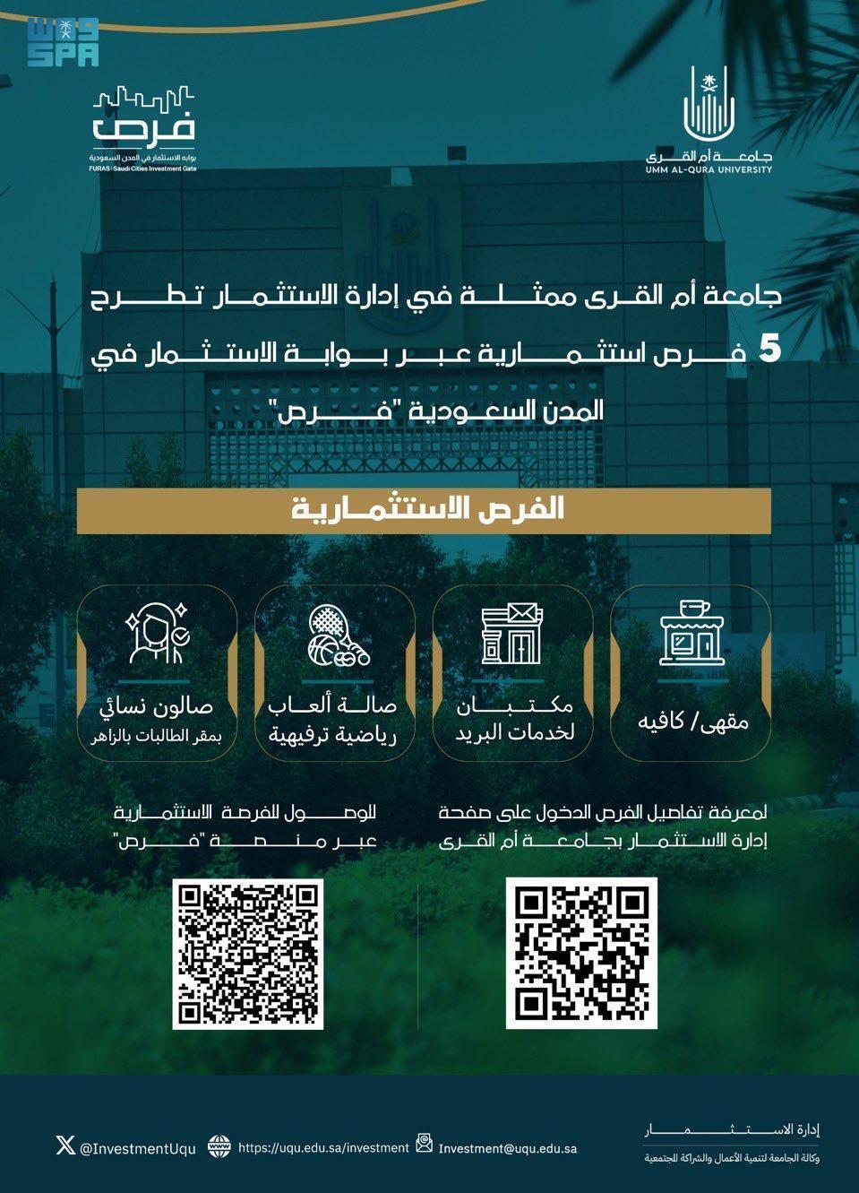 مددت جامعة أم القرى، ممثلة بإدارة الاستثمار طرح عدد من الفرص الاستثمارية، وذلك عبر بوابة الاستثمار في المدن السعودية “فرص”.
