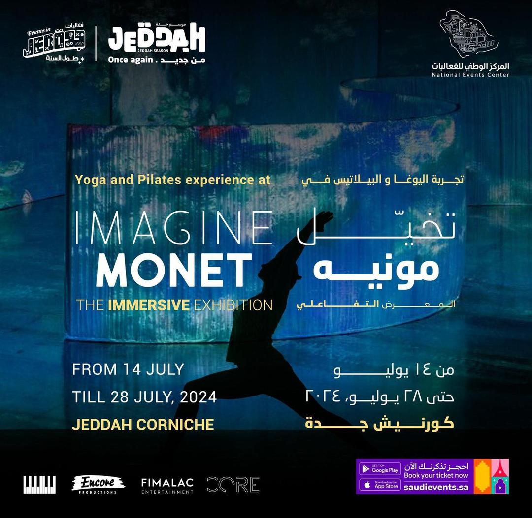 يقدم موسم جدة 2024 تحت شعار (من جديد) تجربة متكاملة وفريدة من نوعها في (اليوغا والبيلاتيس) ضمن معرض مونيه التفاعلي, حيث تتيح هذه التجربة التي تجمع بين الفن والرياضة والاسترخاء للزوار فرصة ممارسة اليوغا، والبيلاتيس وسط أجواء فنية، تحيطهم لوحات الفنان الفرنسي الشهير كلود مونيه.