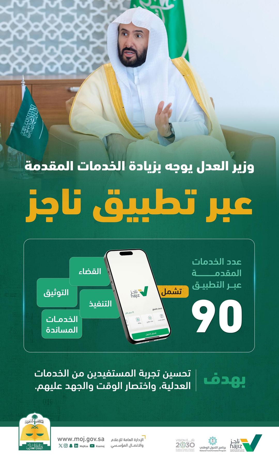 وزير العدل يوجّه بزيادة الخدمات المقدمة عبر تطبيق ناجز تسهيلاً للمستفيدين