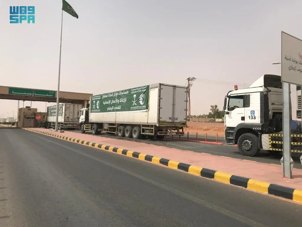 294 شاحنة إغاثية مقدمة من مركز الملك سلمان للإغاثة تعبر منفذ الوديعة الحدودي متوجهة إلى اليمن