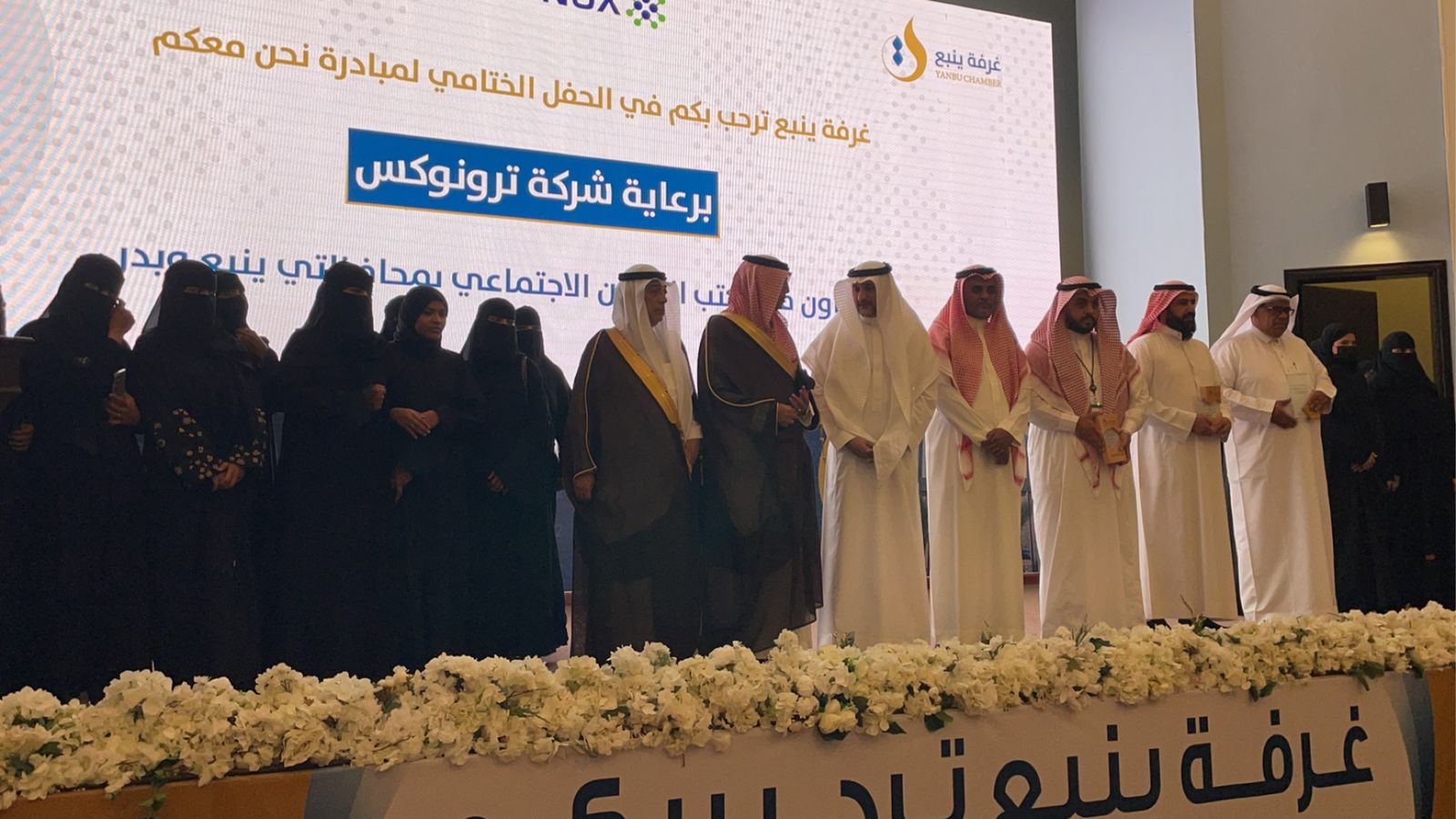 رعى محافظ ينبع سعادة الأستاذ سعد السحيمي الحفل الختامي لمبادرة ” نحن معكم ” والتي نظمتها الغرفة التجارية بينبع مساء اليوم الإثنين ١٤٤٦/١/٢٢هـ بالتعاون مع شركة ترونوكس السعودية للتصنيع ومكتب الضمان الإجتماعي بمحافظتي ينبع وبدر حيث حضر الحفل سعادة رئيس الغرفة الأستاذ أحمد الشغدلي وأمين عام الغرفة أ. ماجد الرفاعي ومدراء الإدارات، كما حضر الحفل سعادة رئيس شرطة ينبع العميد عبدالرحمن السحيمي ومدير شعبة الأمن الوقائي العقيد فواز الأحمدي كذلك مدير مكتب الضمان الإجتماعي ببدر، وأيضاً رئيس شركة ترونوكس المهندس إياد حجار وعضو مجلس الشركة الأستاذ فوزي الشريف ومدير عام الخدمات المساندة بالهيئة الملكية بينبع الأستاذ محمد باجرفان ومدير الخدمات الإجتماعية الأستاذ غازي العتيبي.