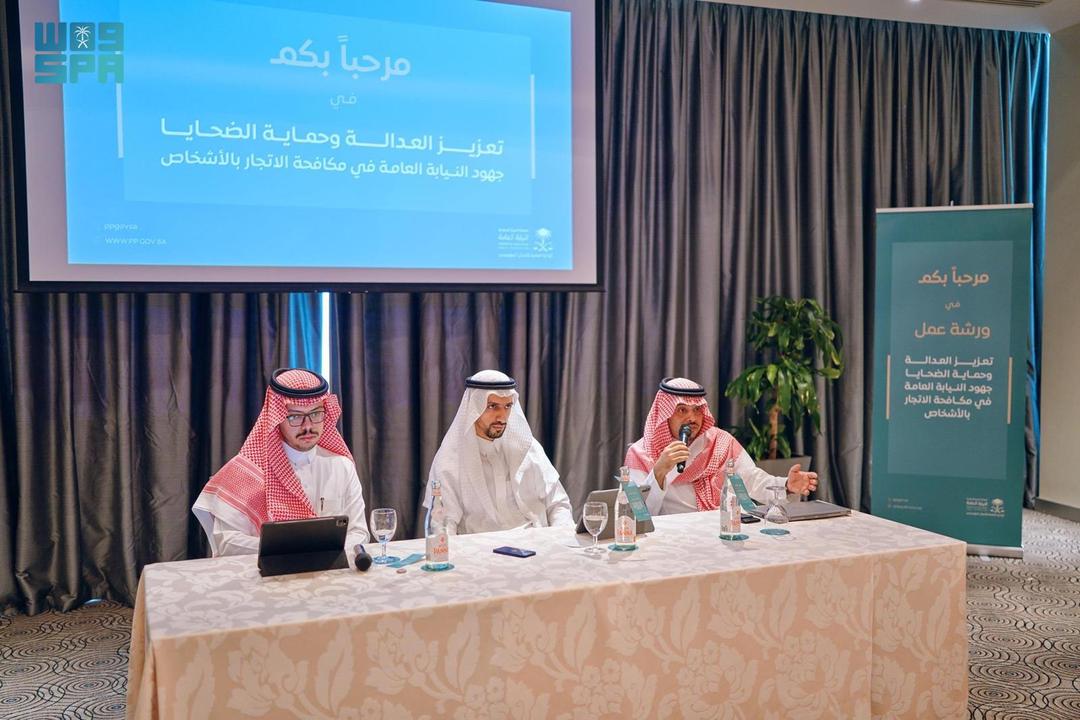 نظمت النيابة العامة، ممثلة بنيابة الاتجار بالأشخاص، ورشة عمل متخصصة بمناسبة اليوم العالمي لمكافحة جرائم الاتجار بالأشخاص بالمنطقة الشرقية, بحضور رؤساء نيابات الاتجار بالأشخاص في نيابات المناطق.