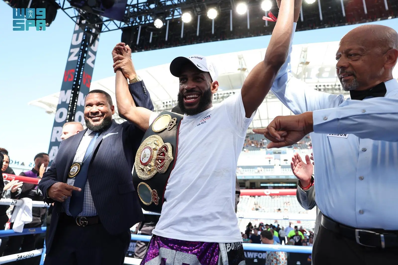 وخلال النزال الرئيسي، بين الأوزبكي إسرائيل مادريموف والأمريكي تيرنس كروفورد، حُسم الفوز لصالح كروفورد بالإجماع، ليتسلم حزام WBA للوزن المتوسط ويصبح بطل العالم في أربعة أوزان رسمية.