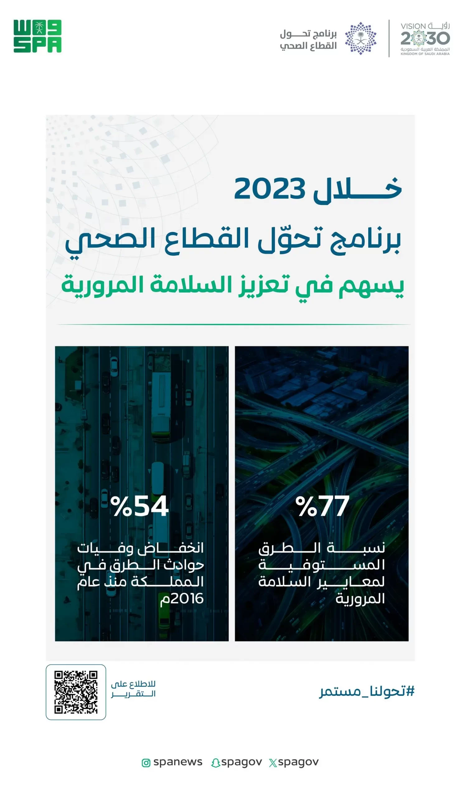 كرس برنامج تحول القطاع الصحي مستهدفاته نحو تعزيز السلامة على الطرقات؛ حفاظاً على الأرواح من خلال العمل على خفض معدلات الإصابات والوفيات الناتجة عن الحوادث المرورية.