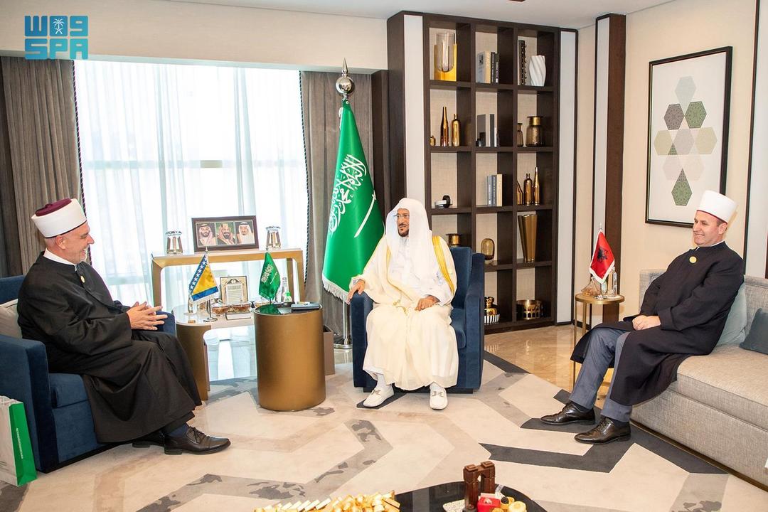 التقى معالي وزير الشؤون الإسلامية والدعوة والإرشاد الشيخ الدكتور عبداللطيف بن عبدالعزيز آل الشيخ، اليوم، المفتي العام ورئيس المشيخة الإسلامية في البوسنة والهرسك الدكتور حسين كافازوفيتش، ورئيس المشيخة الإسلامية مفتي عام ألبانيا بويار سباهيو، وذلك بمقر إقامة المؤتمر التاسع لوزراء الأوقاف والشؤون الإسلامية في مكة المكرمة.