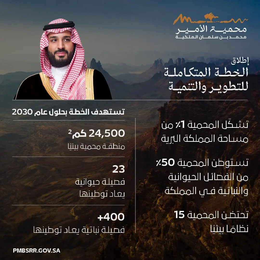 أعلن مجلس إدارة هيئة تطوير محمية الأمير محمد بن سلمان الملكية برئاسة صاحب السمو الملكي الأمير محمد بن سلمان بن عبدالعزيز آل سعود، ولي العهد رئيس مجلس الوزراء، رئيس مجلس المحميات الملكية – حفظه الله -, اليوم، إطلاق الخطة المتكاملة للتطوير والتنمية للمحمية (IDMP)، حيث ستضع الخطة خارطة طريق شاملة تواكب أفضل المعايير وتغطي الجوانب البيئية والاقتصادية والاجتماعية والسياحية والثقافية للمحمية التي تمتد على مساحة 24,500 كيلومتر مربع، وتضم 15 نظاماً بيئياً متميزاً، من التلال الجبلية إلى الشعاب المرجانية، في شمال غرب المملكة.