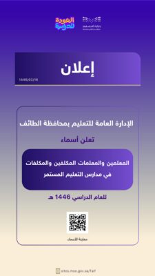 اعتماد أسماء المكلفين بالعمل بالتعليم المستمر بالطائف