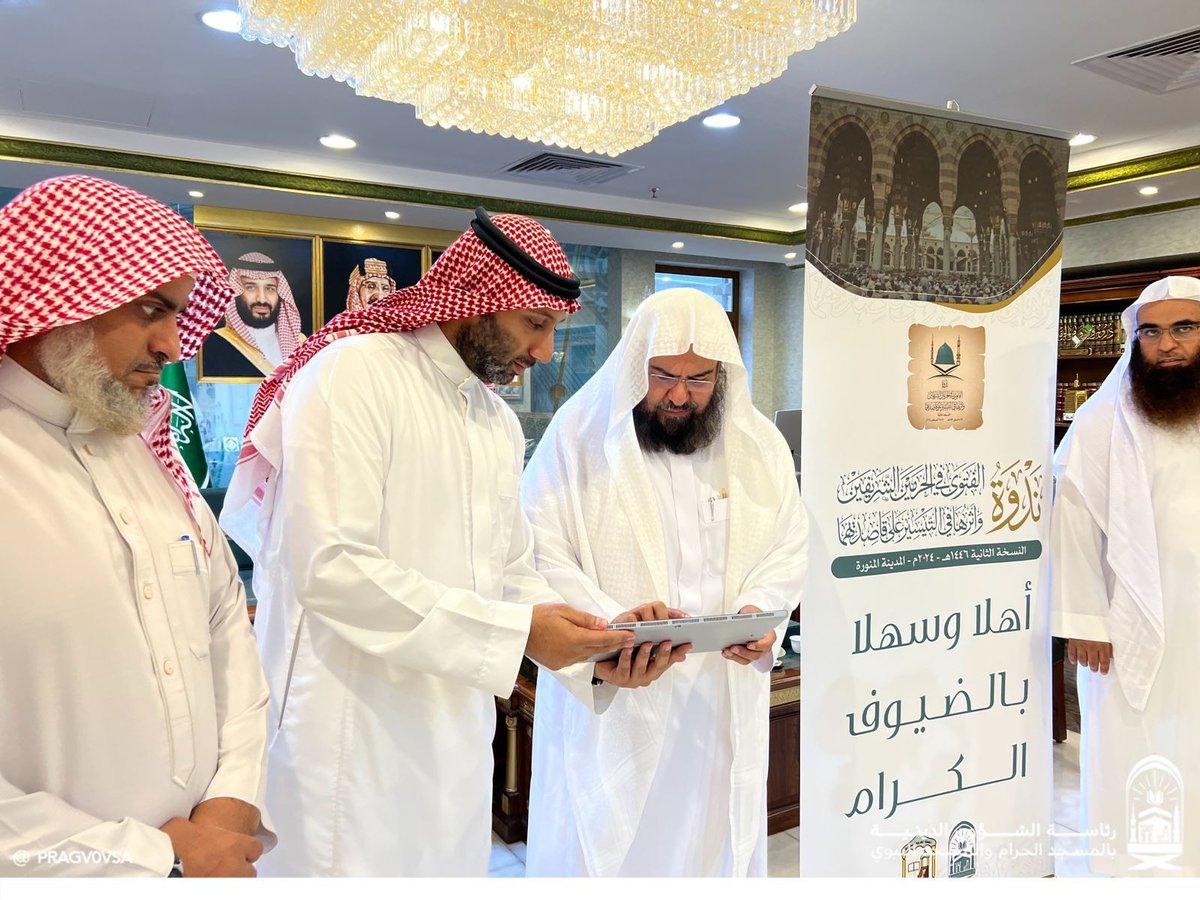 دشن رئيس الشؤون الدينية بالمسجد الحرام والمسجد النبوي، الشيخ الدكتور عبد الرحمن السديس بمقر رئاسة الشؤون الدينية بمكة المكرمة، الموقع الإلكتروني الخاص بندوة الفتوى في الحرمين الشريفين، والتي تقام في رحاب المسجد النبوي لأول مرة الأسبوع المقبل، تأكيداً لأهمية بث ونشر رسالة الندوة إسلامياً وعالمياً، وإبراز دور الفتوى في الحرمين، وترسيخ منهج الوسطية والاعتدال.