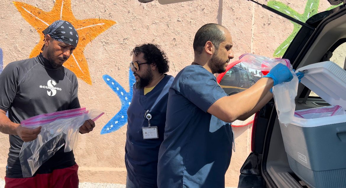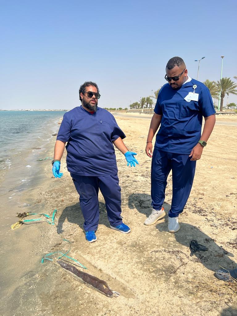 باشر فريق عمل من المختصين بالمركز الوطني للثروة السمكية حالة نفوق أسماك من نوع الشاقة على شاطئ بهادر بمحافظة جدة وذلك تجاوباً مع البلاغات الواردة للمركز من القطاعات الحكومية او بلاغات المواطنين؛ وقد تم أخذ عينات من المواقع مختلفة لمعرفة أسباب النفوق وإعداد محضر بذلك .