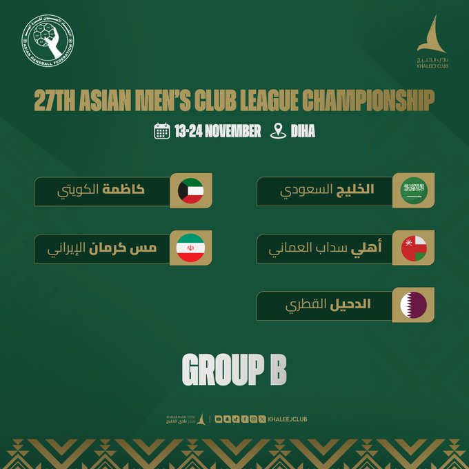 قرعة البطولة الآسيوية تضع نادي الخليج في المجموعة الثانية لكرة اليد 2024