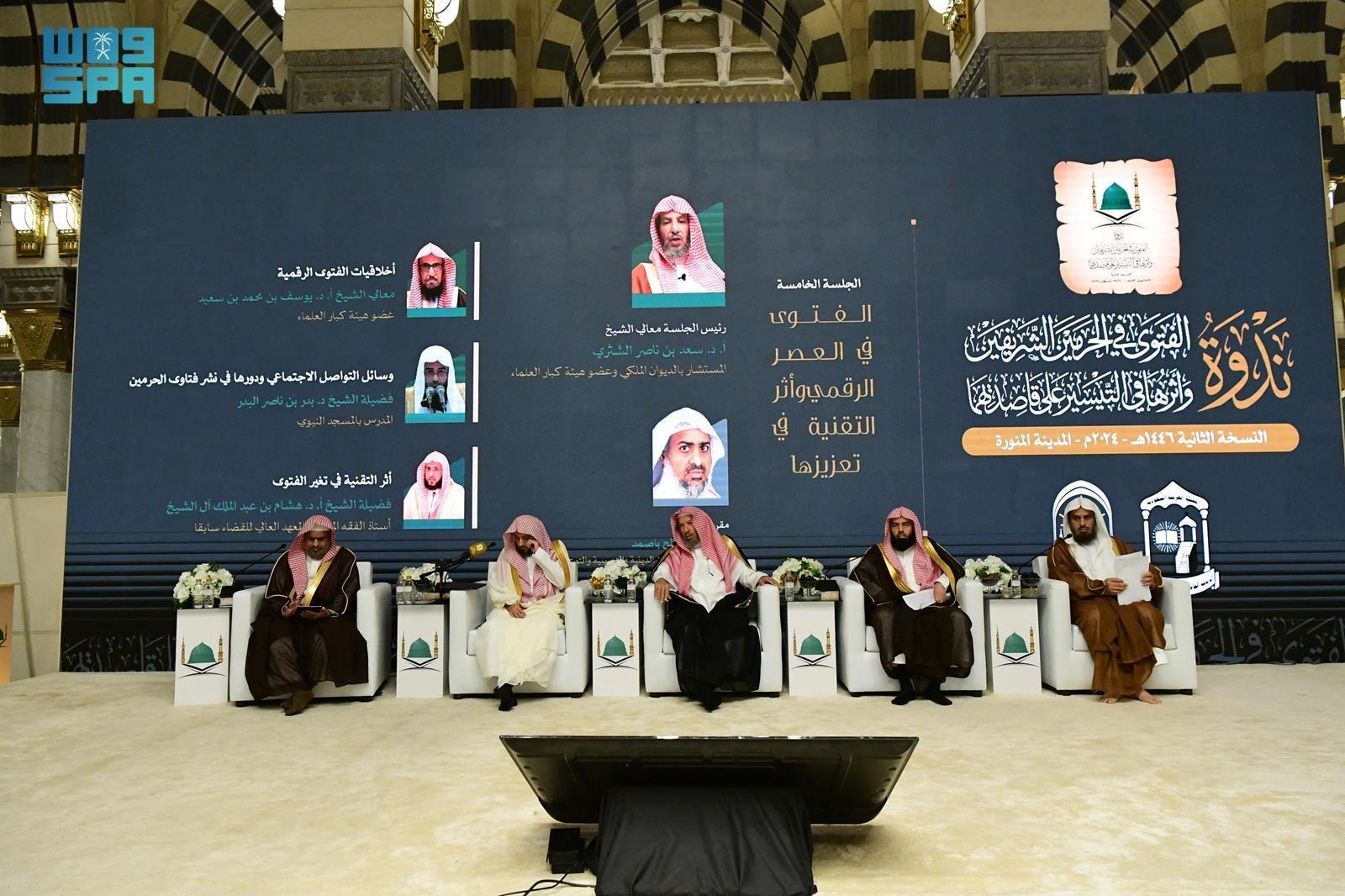 واصلت ندوة (الفتوى في الحرمين الشريفين وأثرها في التيسير على قاصديهما) في نسختها الثانية والمُقامة برحاب المسجد النبوي، والتي تُنظمها رئاسة الشؤون الدينية بالمسجد الحرام والمسجد النبوي بالتعاون مع الرئاسة العامة للبحوث العلمية والإفتاء، وبالشراكة الإعلامية مع هيئة وكالة الأنباء السعودية جلساتها صباح اليوم.