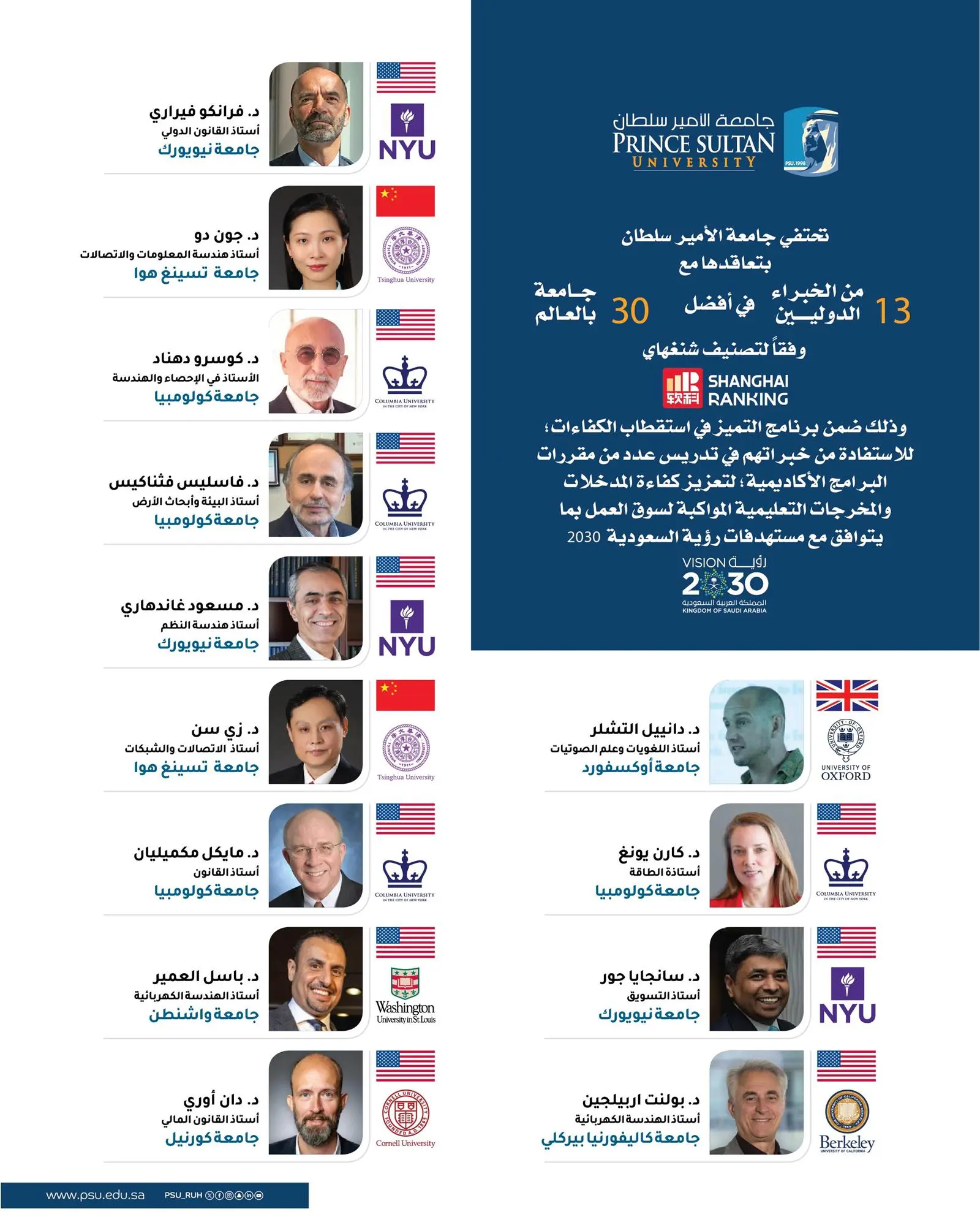 جامعة الأمير سلطان تدعم قدراتها التعليمية بـ 13 خبيراً دوليّاً في أفضل 30 جامعة في العالم