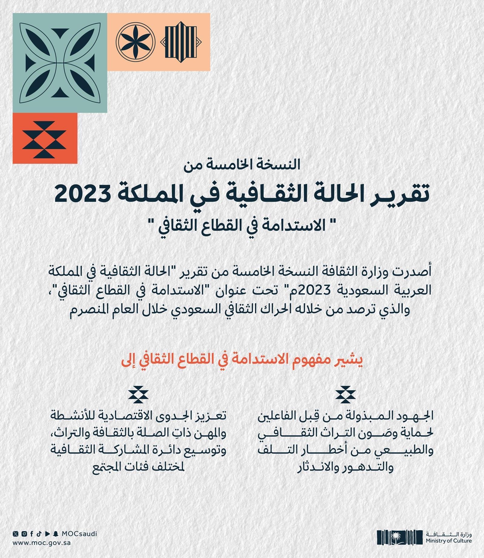 وزارة الثقافة تُصدر النسخة الخامسة من تقرير الحالة الثقافية في المملكة “الاستدامة في القطاع الثقافي”