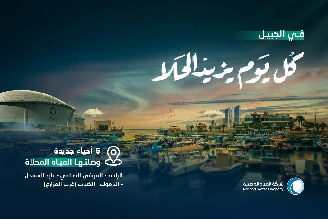 رفعت شركة المياه الوطنية، ممثلة بقطاعها الشرقي نسبة تغطية عدد من أحياء محافظة الجبيل بالمياه المحلاة، لخدمة أكثر من (31) ألف من عملاء الشركة، ويأتي ذلك لتعزيز منظومة توزيع مياه الشرب، وإدارة الطلب عليها، والتوسع في تقديم الخدمات المائية.