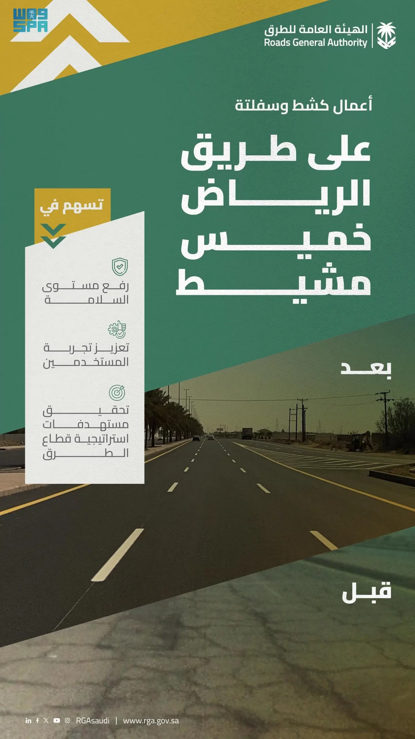 “هيئة الطرق”: الانتهاء من أعمال الصيانة على طريق الرياض/ خميس مشيط