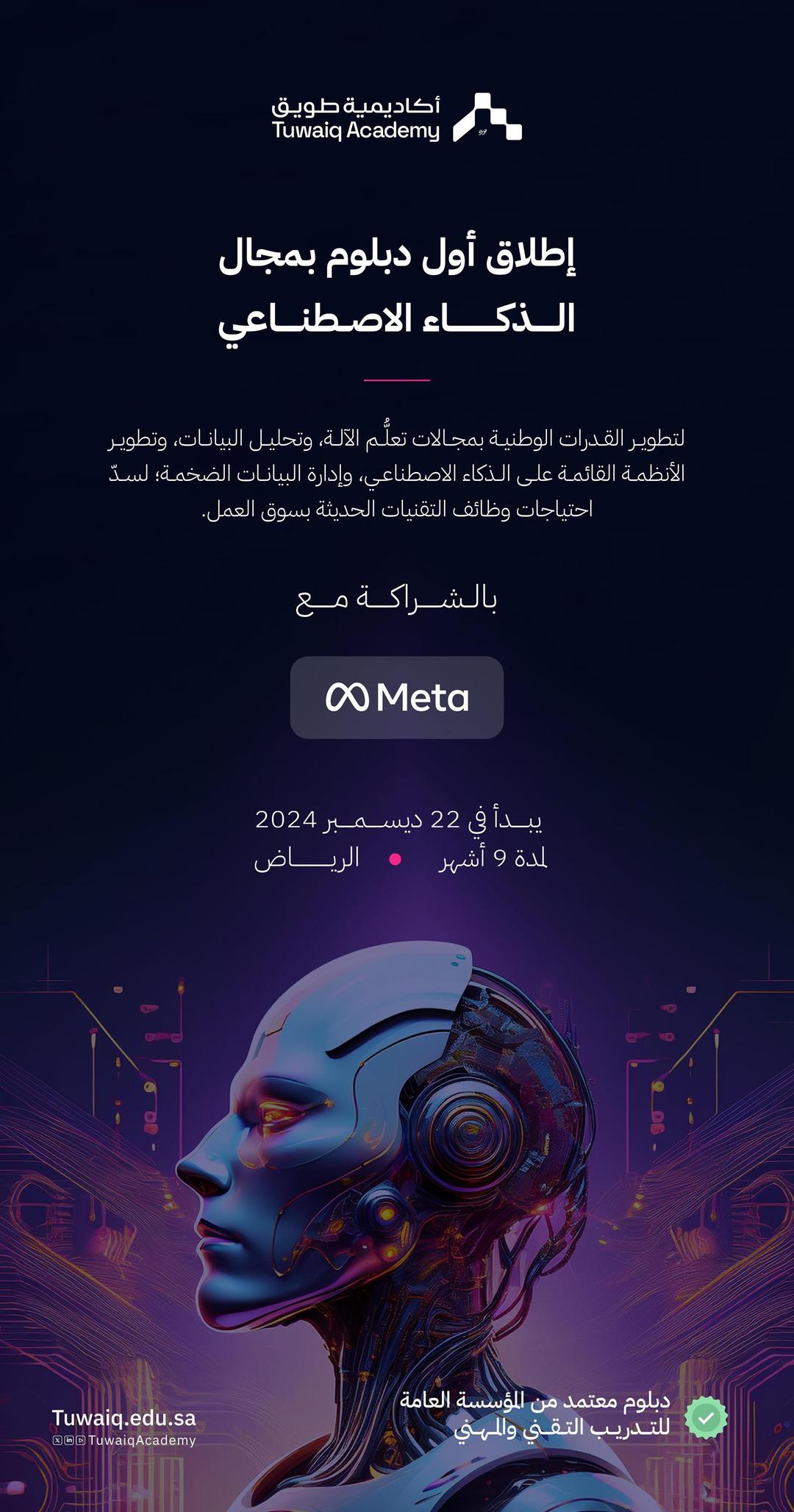 أكاديمية طويق تطلق أول دبلوم بمجال الذكاء الاصطناعي بالشراكة مع "meta"