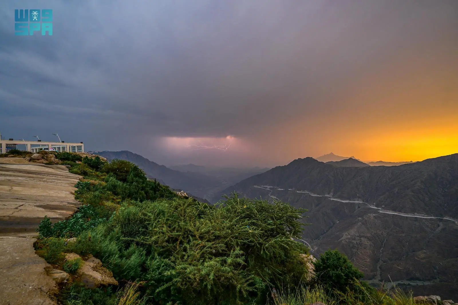 وتجولت “واس” على قمم جبال السروات ووثَّقت استقبال سماء الباحة للبروق، التي جمعت في إضاءتها المطر في جو بديع.