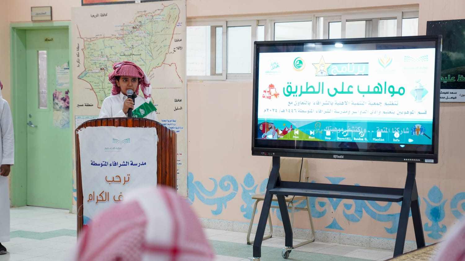 نظمت جمعية التنمية الأهلية بالشرافاء بالتعاون مع قسم الموهوبين ومدرسة الشرافاء المتوسطة في وادي الدواسر برنامج “مواهب على الطريق” والذي استهدف طلاب المدارس في جميع المراحل الدراسية بالتعليم العام، حيث شارك فيه أكثر من ٢٥٠ طالب، وشمل ست فعاليات متنوعة تمثلت في الإنشاد، الرسم، الخط العربي، الإلقاء، والمسابقات الثقافية، مما أتاح للطلاب فرصة اكتشاف وتطوير مواهبهم.