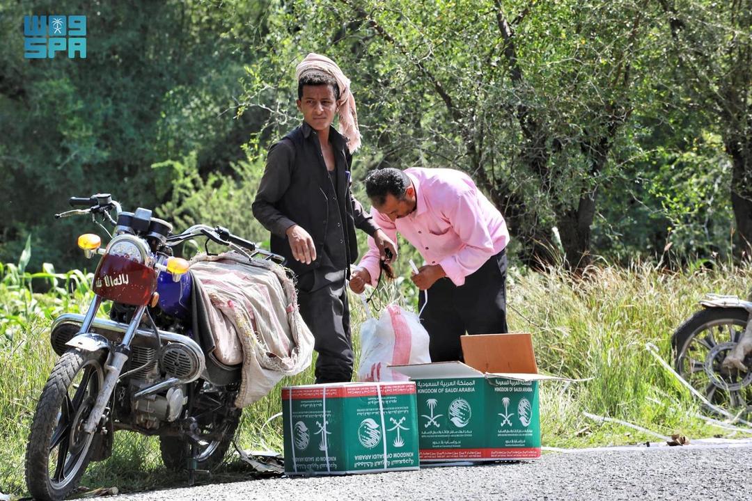 مركز الملك سلمان للإغاثة يوزع 211 سلة غذائية في مديرية المواسط بمحافظة تعز