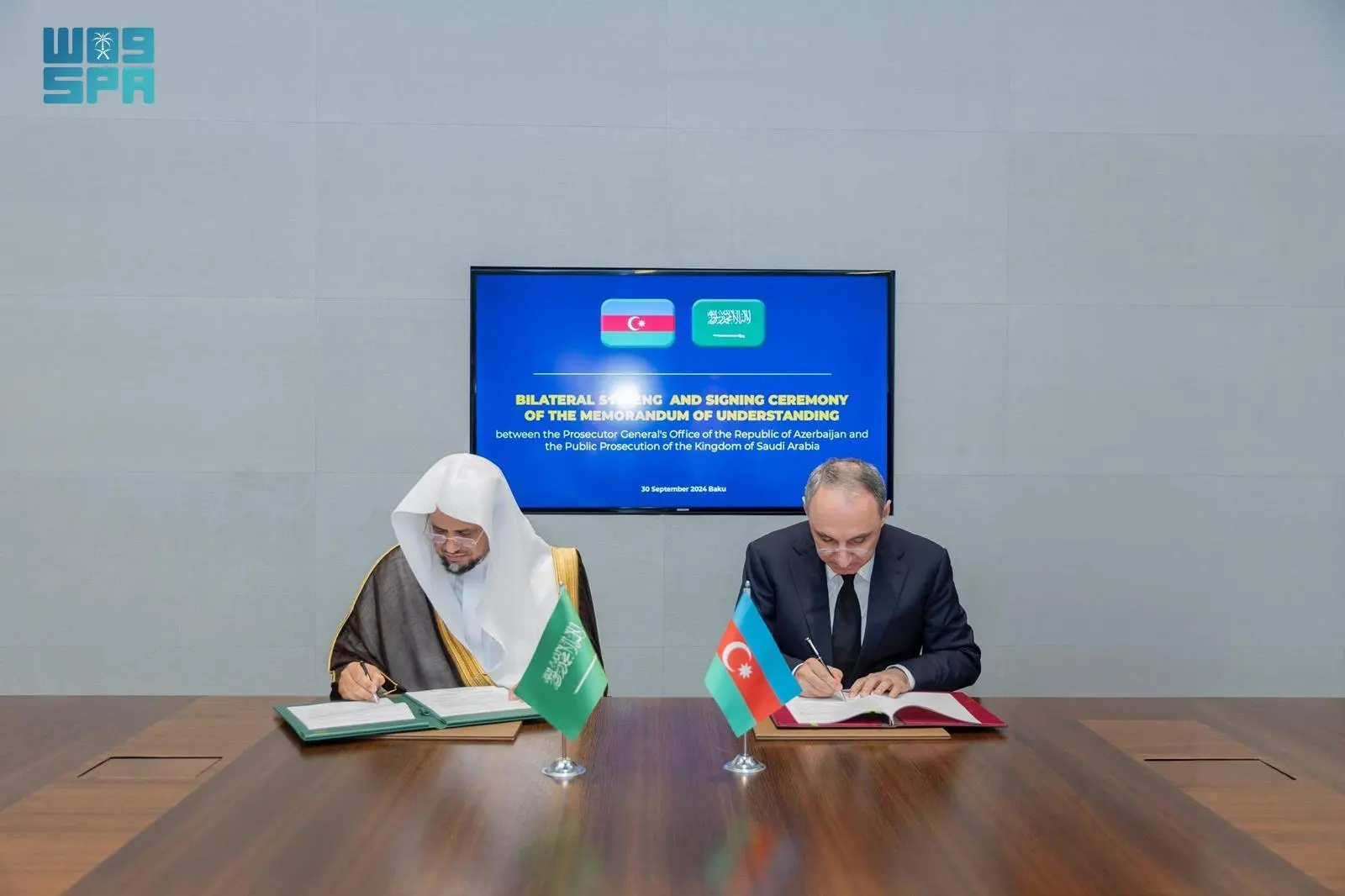 ووقع الجانبان مذكرة تفاهم بين النيابة العامة للمملكة العربية السعودية والنيابة العامة لجمهورية أذربيجان تهدف إلى تبادل المعلومات في المجالات المشتركة، وإجراء البحوث حول المسائل الهامة المرتبطة بالمصالح المشتركة بين الطرفين وعقد الاجتماعات واللقاءات العلمية المشتركة.