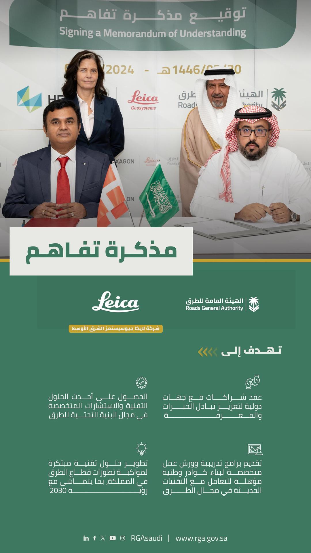 “هيئة الطرق” توقع مذكرة تفاهم مع “لايكا جيو سيستمز” لتطوير أحدث الحلول التقنية