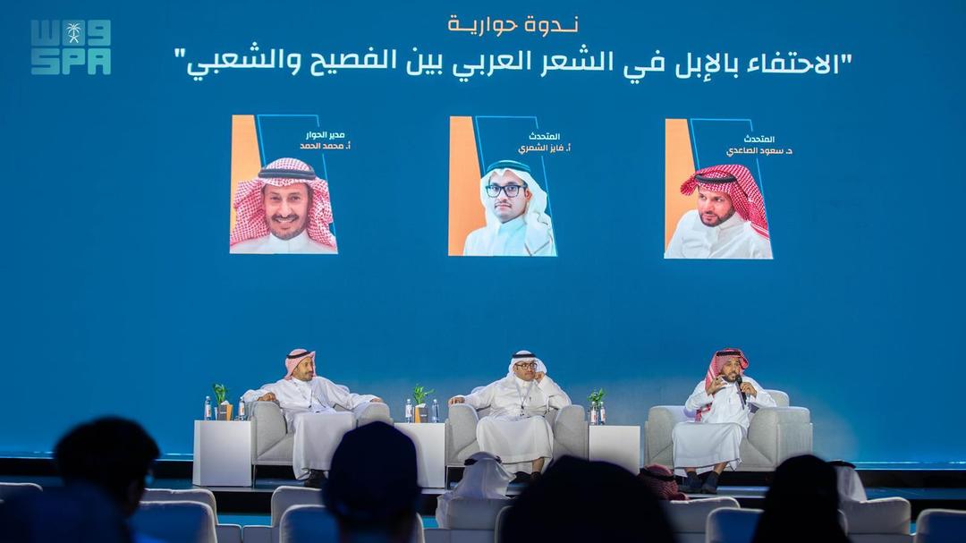 وطرح أستاذ البلاغة في جامعة أم القرى الدكتور: “سعود الصاعدي” بعض النماذج التحليلية التي يمكن من خلالها فهم الشعر العربي الذي قيل في الإبل وهي: الاسم والوسم والقاموس والناموس والمورد والمنتجع، مشيرًا إلى كثرة ألفاظ الإبل وتنوعها وقوة دلالاتها؛ مما جعلها ذات تأثير عميق وثري في قاموسنا العربي قديمه وحديثه.
